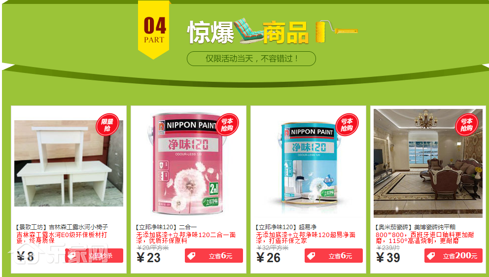 地板、瓷砖、木门、卫浴、家具、橱柜、心动不如步履,你还能坐等吗?家里正正在拆修或者拆修即将完成的业从都能够过来看看,满脚您的一切便当糊口,机遇只要一次。低价钱抢购,